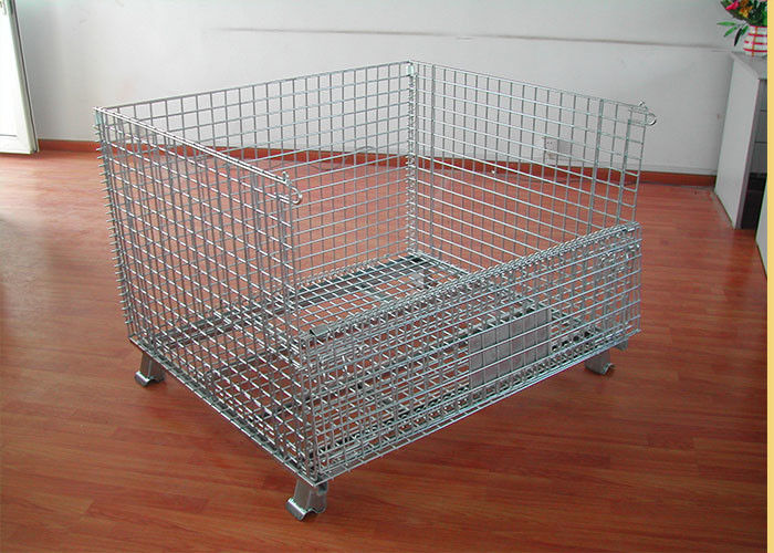 गोदाम में फोल्डेबल गैल्वेनाइज्ड वायर मेश स्टोरेज केज का उपयोग किया जाता है